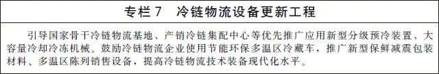 加大綠色冷鏈裝備研發(fā)應(yīng)用。研究制定綠色冷鏈技術(shù)及節(jié)能設(shè)施設(shè)備推廣目錄,鼓勵(lì)使用綠色、安全、節(jié)能、環(huán)保冷藏車(chē)及配套裝備設(shè)施。加快淘汰高排放冷藏車(chē),適應(yīng)城市綠色配送發(fā)展需要,鼓勵(lì)新增或更新的冷藏車(chē)采用新能源車(chē)型。研發(fā)應(yīng)用符合冷鏈物流特點(diǎn)的蓄冷周轉(zhuǎn)箱、保溫包裝、保溫罩等。研究加強(qiáng)冷鏈物流全流程、全生命周期碳排放管理,加強(qiáng)低溫加工、冷凍冷藏、冷藏銷(xiāo)售等環(huán)節(jié)綠色冷鏈裝備研究應(yīng)用,鼓勵(lì)使用綠色低碳高效制冷劑和保溫耗材,提高制冷設(shè)備規(guī)范安裝操作和檢修水平,最大限度減少制冷劑泄漏,推動(dòng)制冷劑、保溫耗材等回收和無(wú)害化處理。![]()