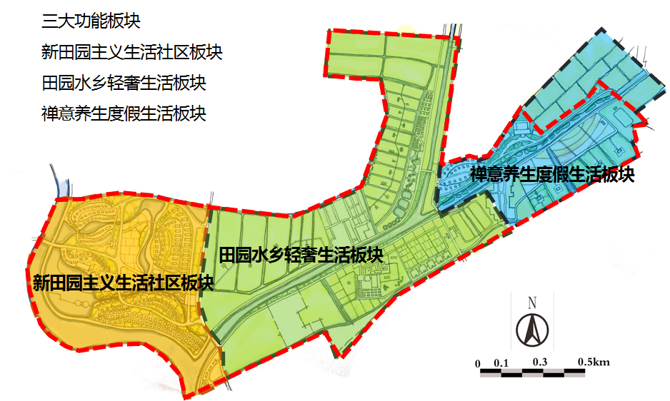 最終圍繞打造“北國(guó)水鄉(xiāng)”戰(zhàn)略,結(jié)合項(xiàng)目場(chǎng)地現(xiàn)狀,決定將項(xiàng)目地分為三大功能板塊進(jìn)行精細(xì)化打造: